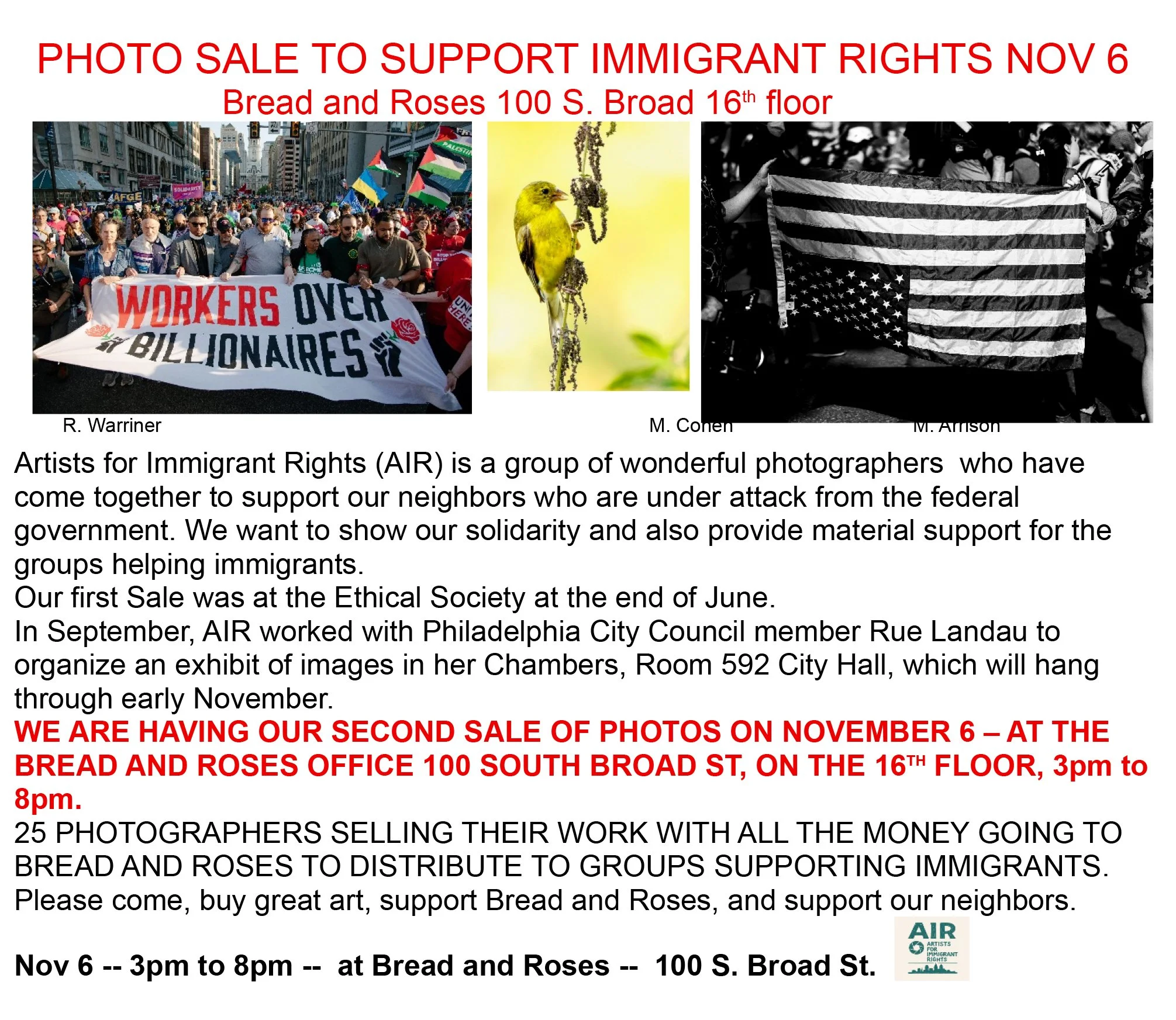 We are looking for photographers to sell their work event! All proceeds go to Bread & Roses.